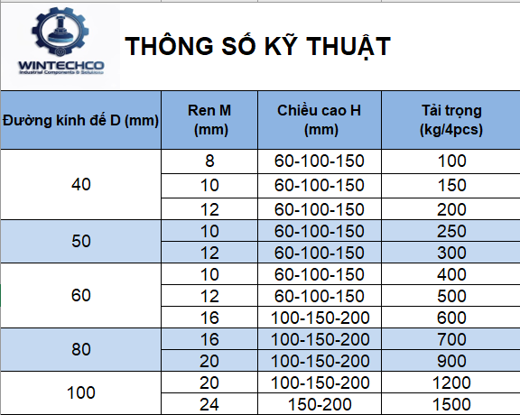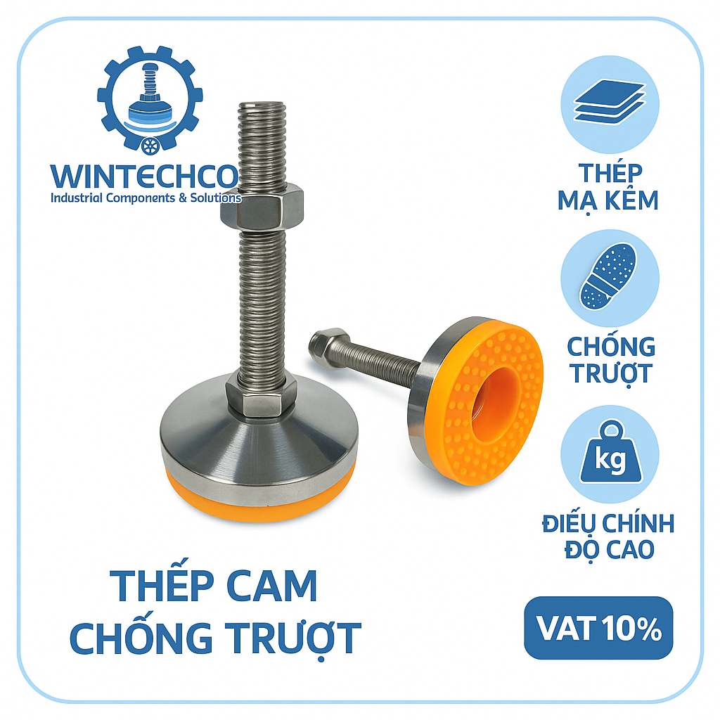 Thân ren lớn (M8–M24) kết hợp đế thép dạng côn tạo khả năng chịu tải vượt trội và độ bền cao trong môi trường nhà xưởng.