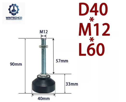 Kích thước đế: Ø40 – Ren: M12 – Chiều cao ren: 60mm